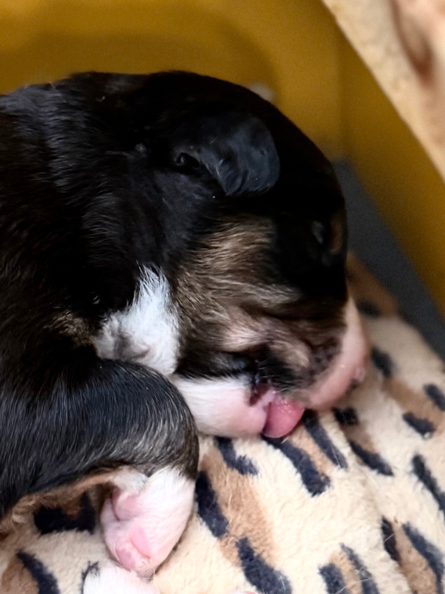 Pennut syntyivät kuudessa tunnissa ja oli emolle hurja urakka. Kaikki meni kuitenkin hyvin ja pennut kasvavat vauhdilla.